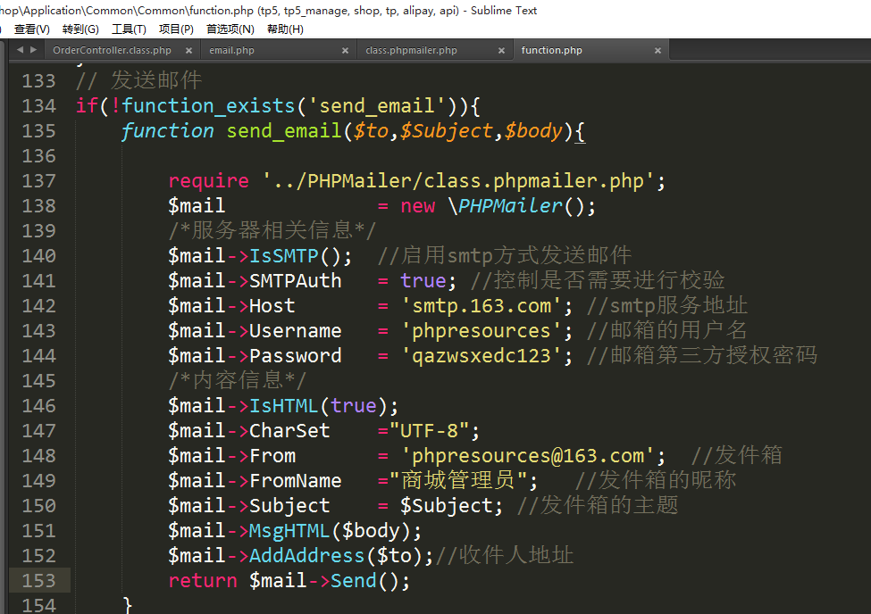 将发送邮件封装成为函数
