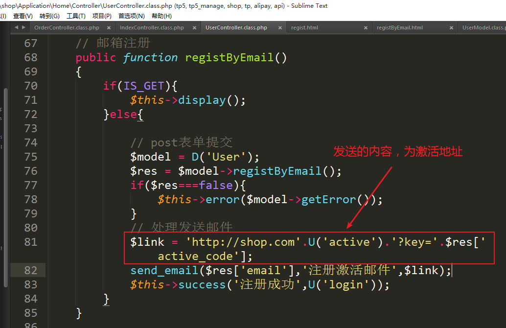 激活邮件本质就是项目中的一个方法的连接地址。此地址当用户访问时需要知道具体是哪一个用户在进行激活操作。因此需要标识符。