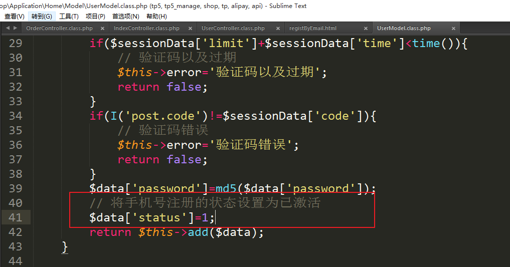 ⑦再次修改调用模型方法实现注册