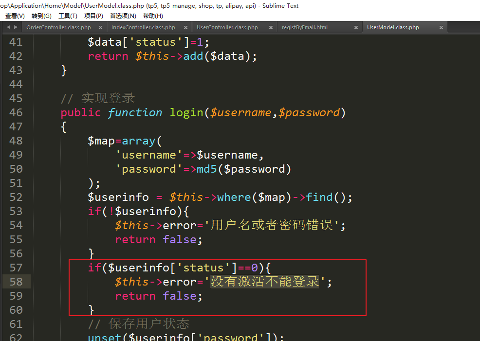③禁止没有激活的用户登录