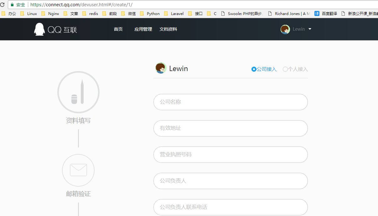 对于第一次登录QQ互联默认会提示表单进行填写