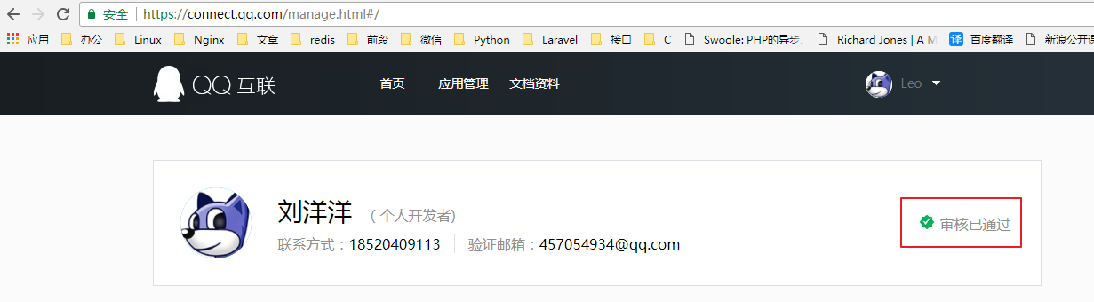 当开发者申请完成之后在应用中可以看到如下的结果
