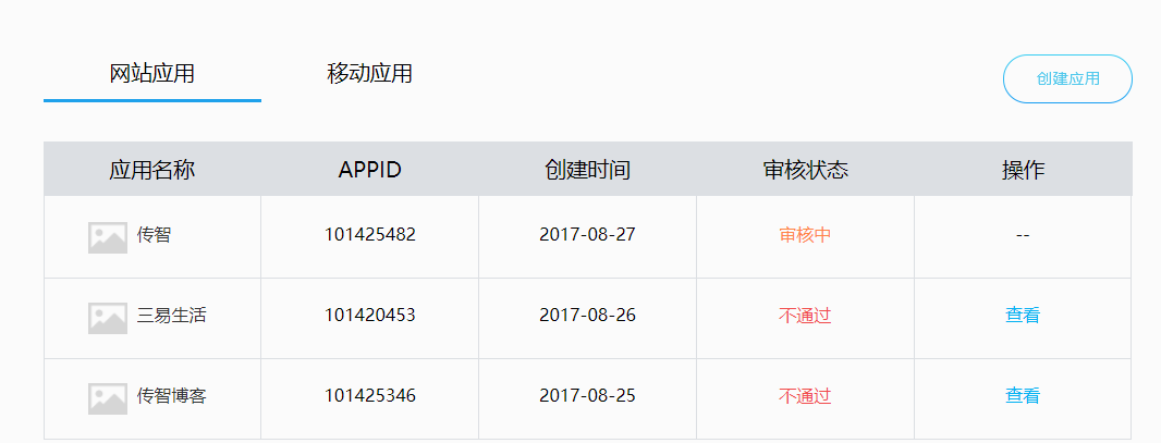 创建应用成功之后同样需要审核。审核周期大概一天。