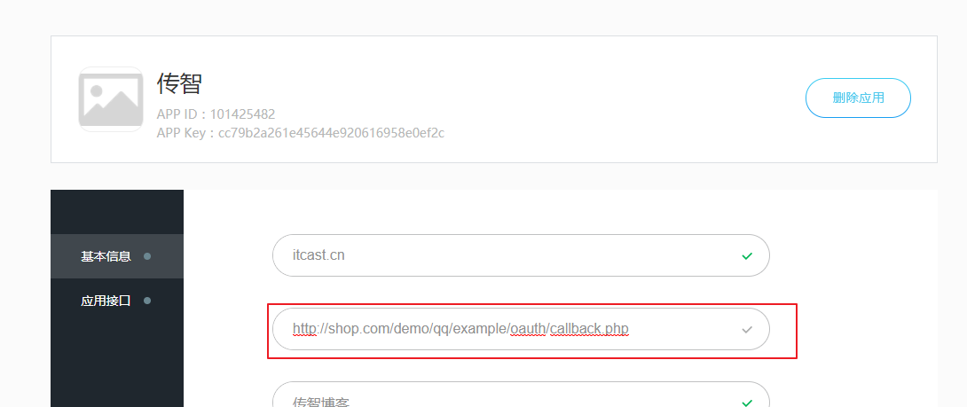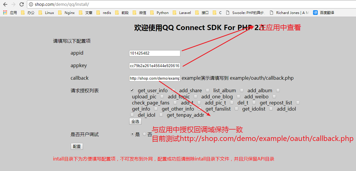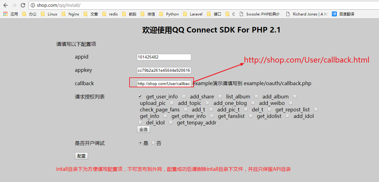 备注:上图的授权回调地址缺少一层qq目录