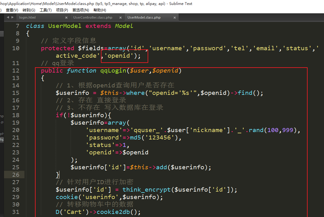 ③在模型中实现方法对用户信息进行入库