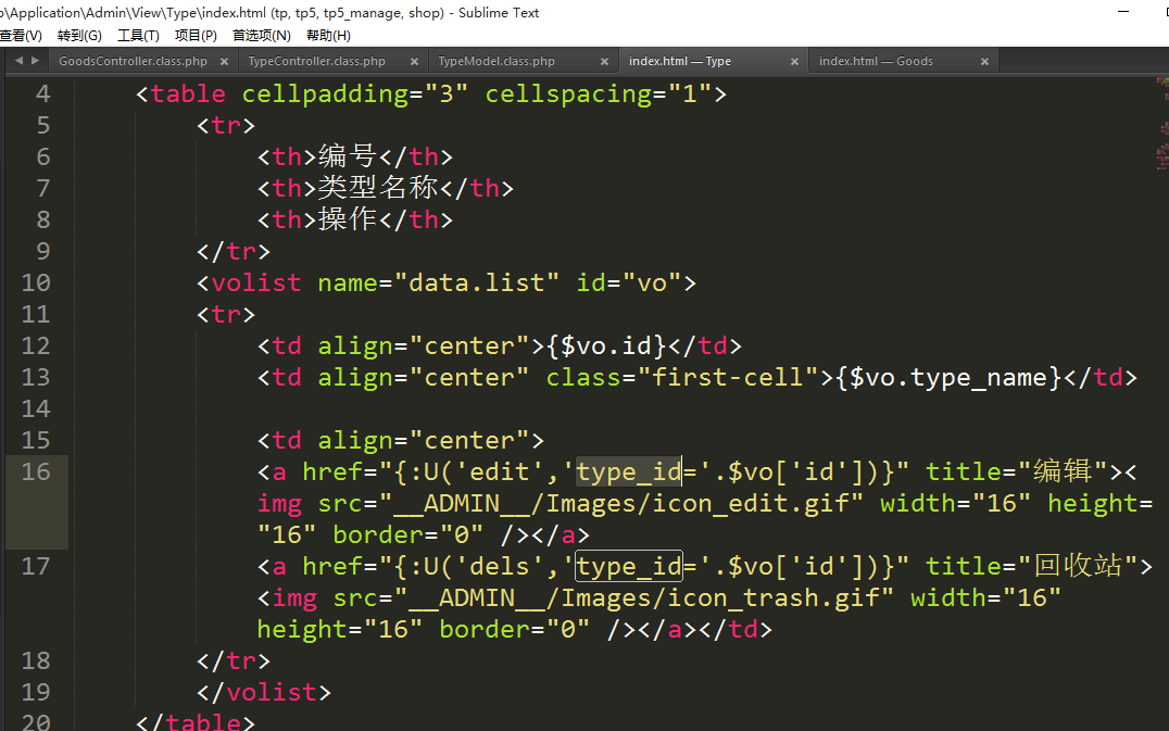 1.1、类型的列表显示