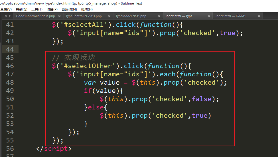 ③实现反选
