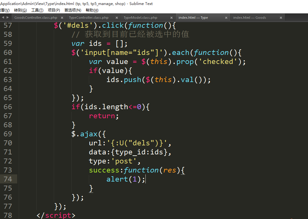 ④点击删除触发ajax