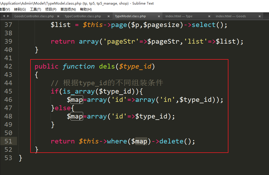 ②定义模型的dels方法实现删除