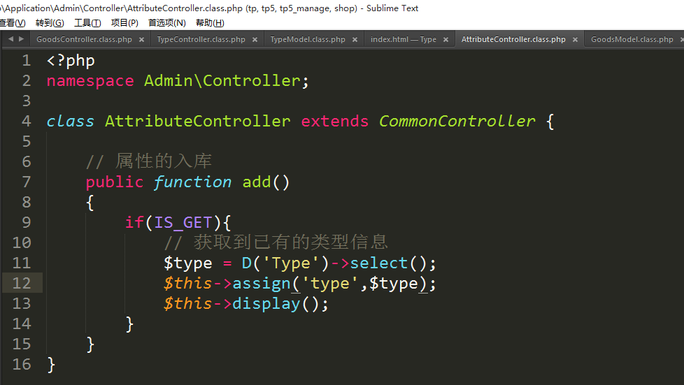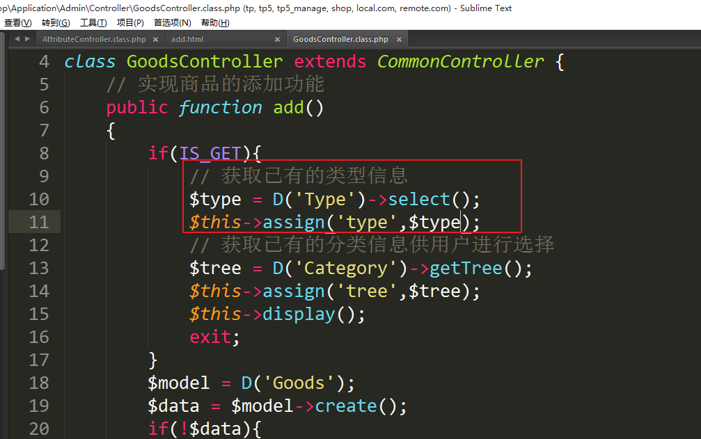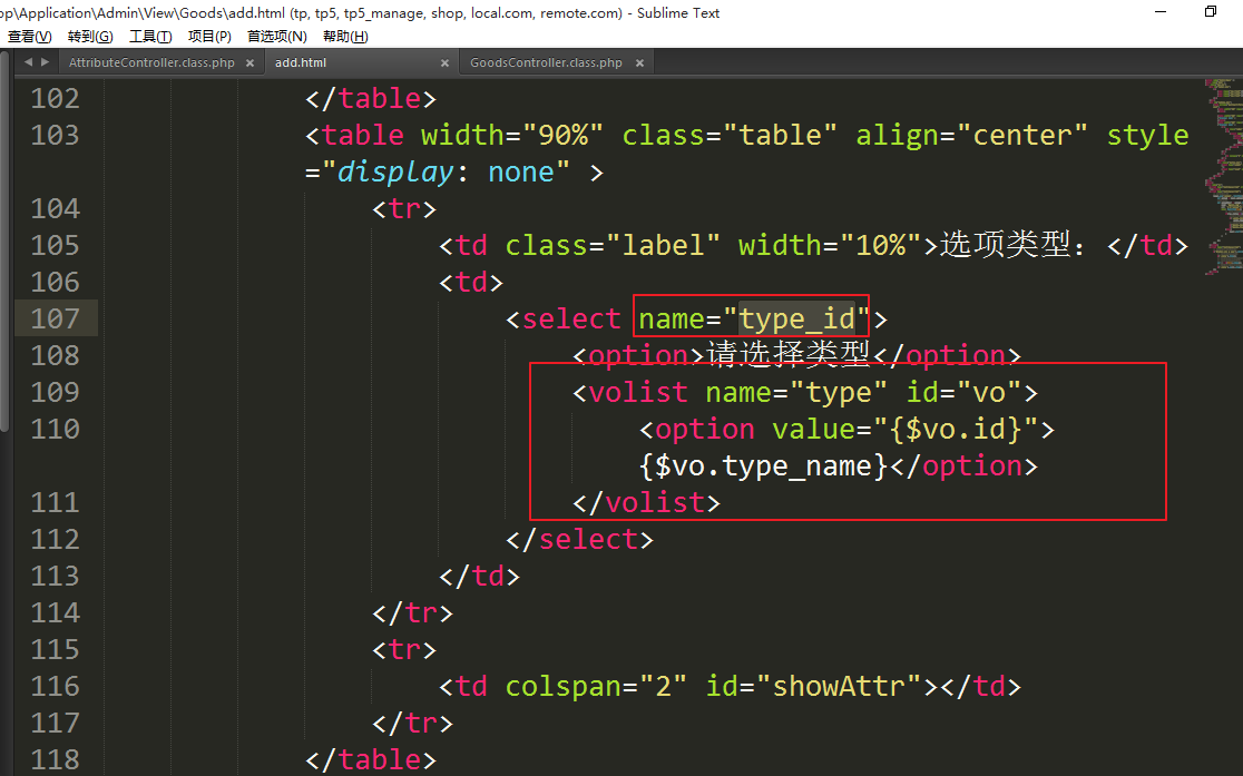 3.1、添加商品时显示类型