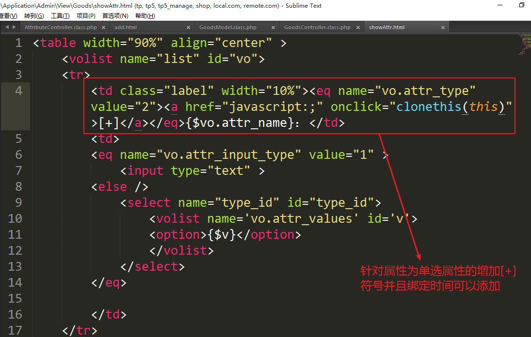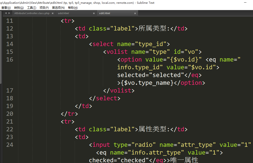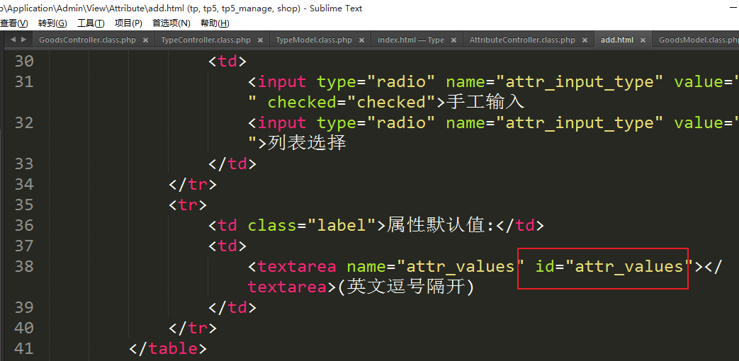 2.3.2、显示属性的添加表单