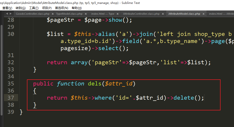 ⑥修改模型中的dels方法