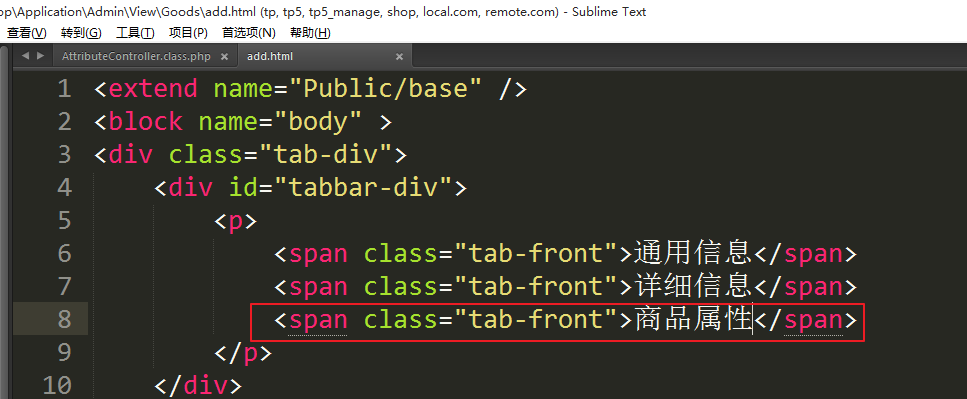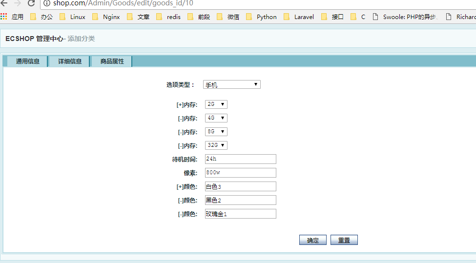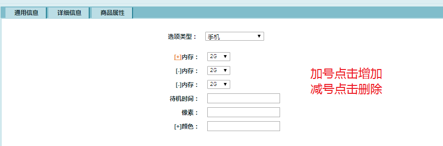 ①增加商品属性选项卡