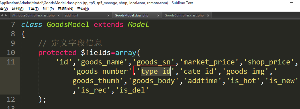 ⑥修改模型中自定义字段