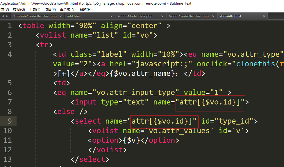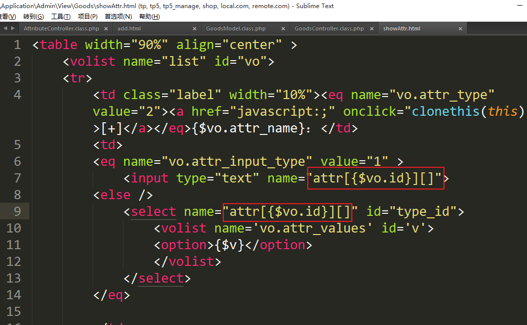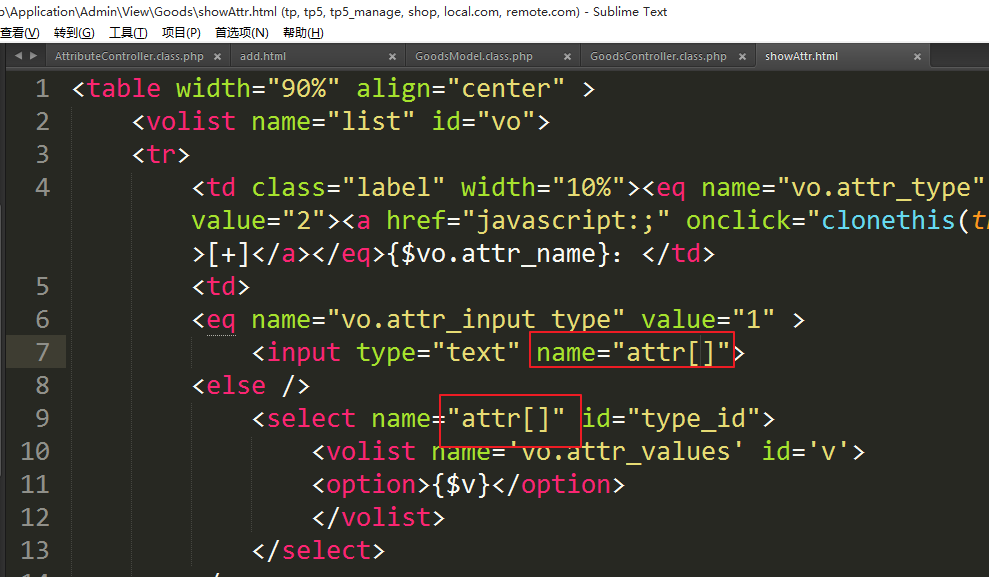 ①修改模板设置数组格式的name