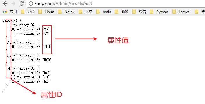 考虑有多个属性值需要提交因此需要使用数组格式