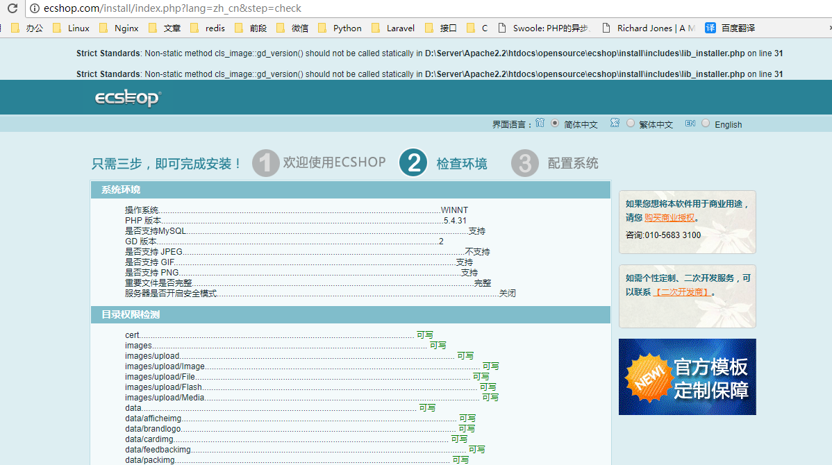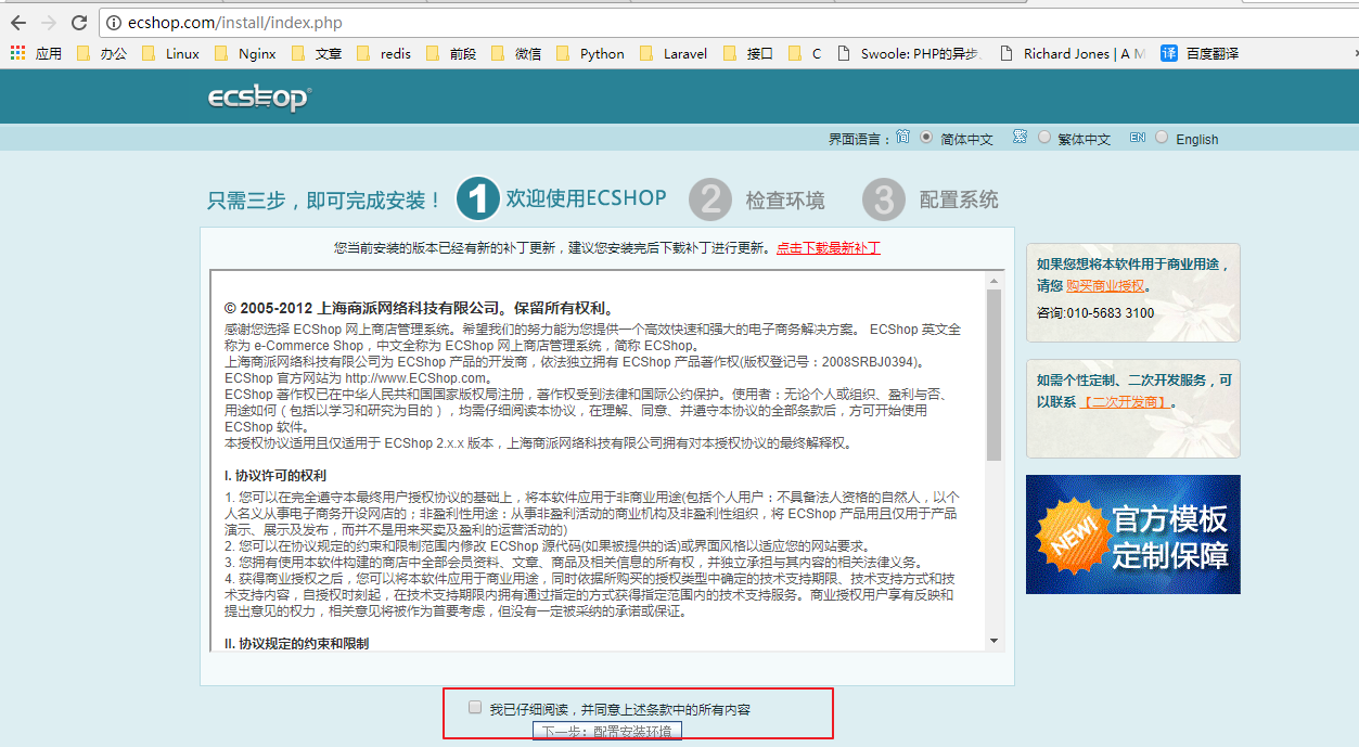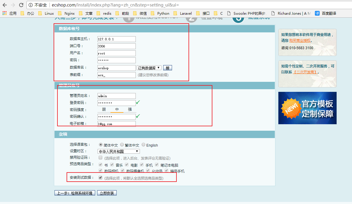 3.2、安装ecshop