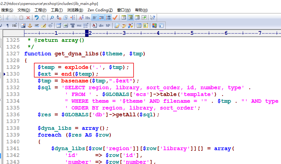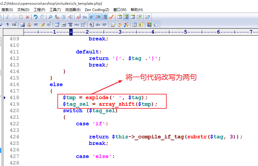 ①修改includes目录下的cls_template.php文件