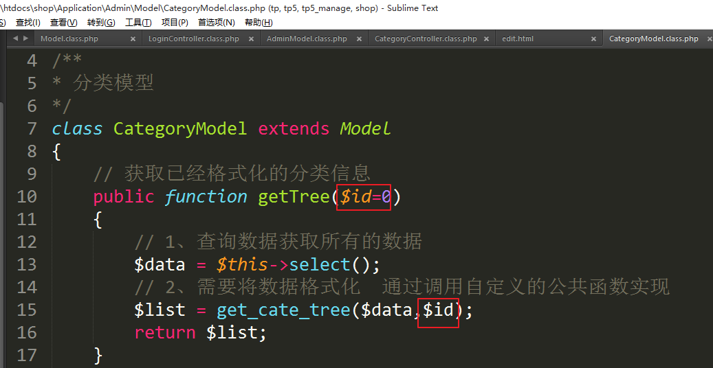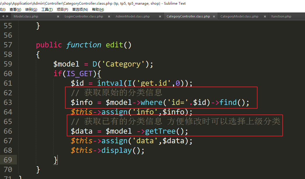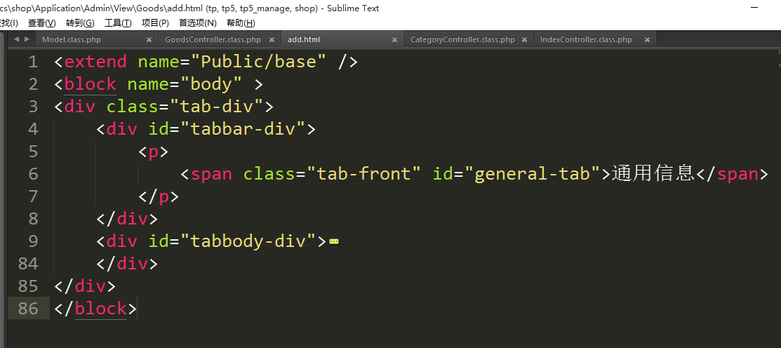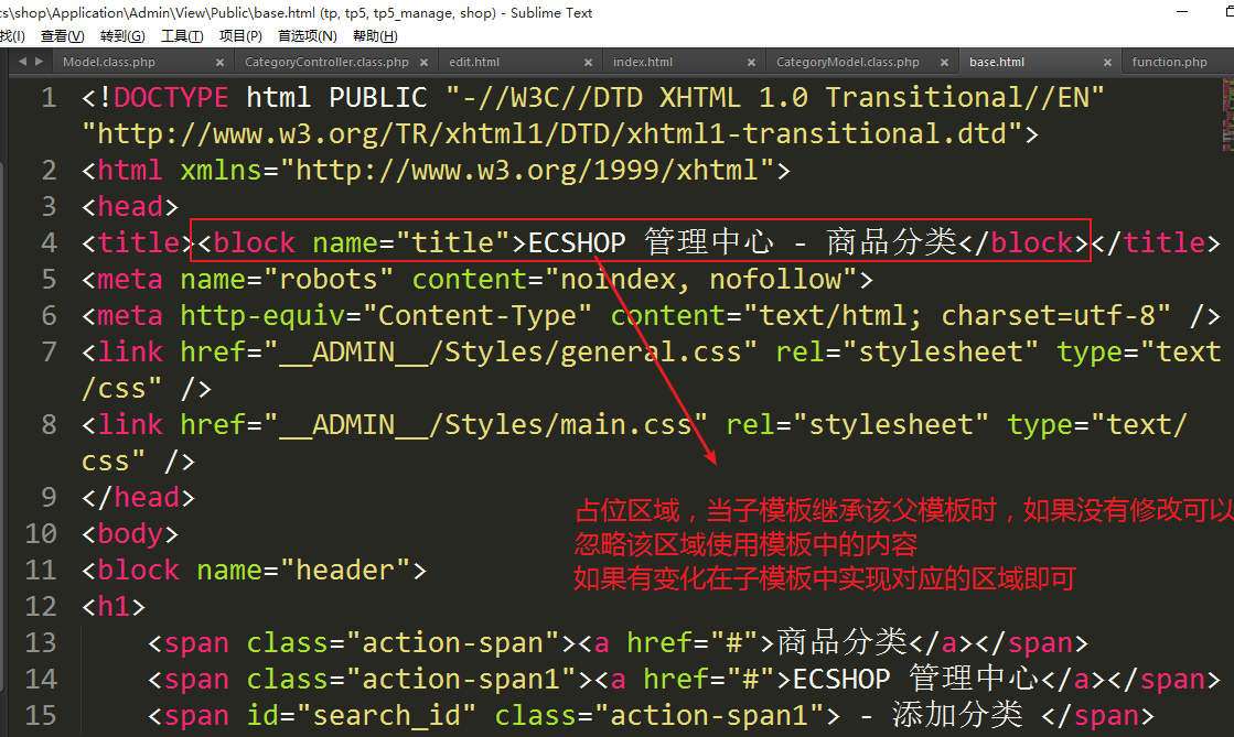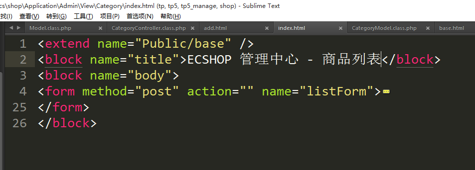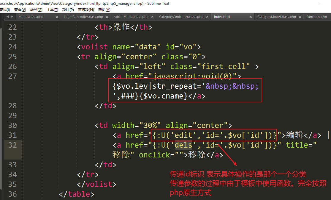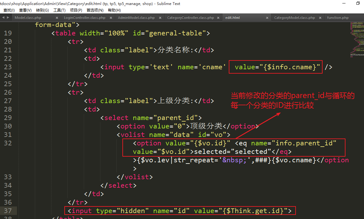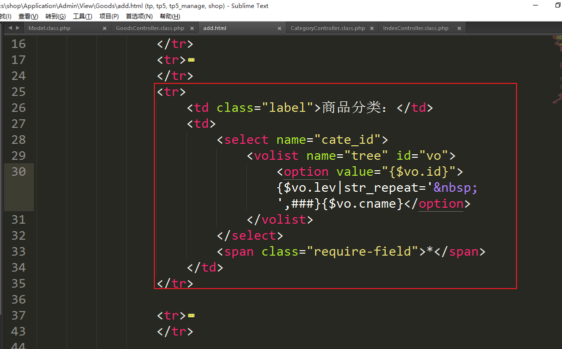 ④处理模板显示商品分类