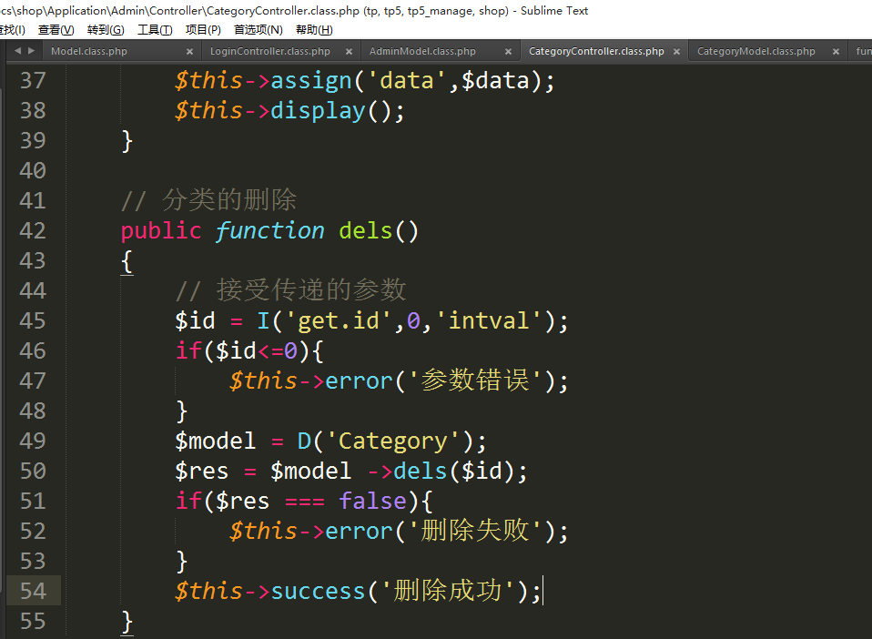 ①创建方法调用模型方法进行删除
