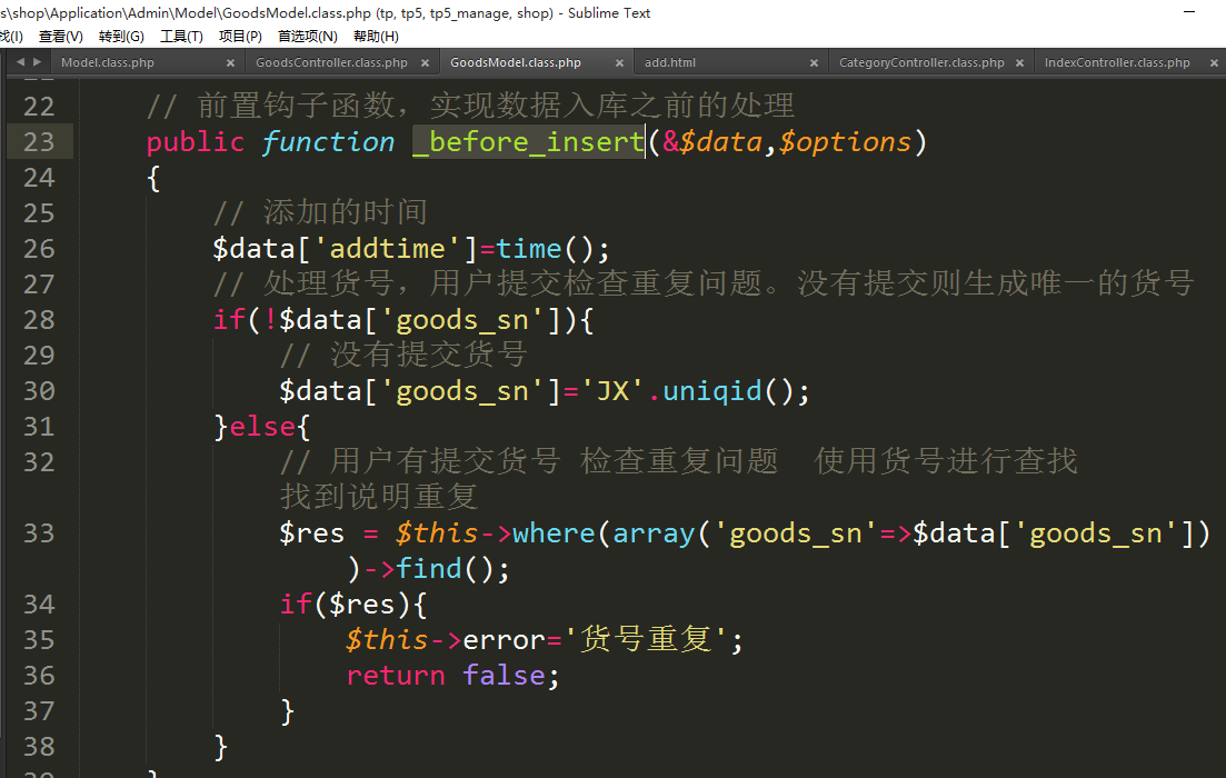 ⑤增加添加数据的前置钩子函数