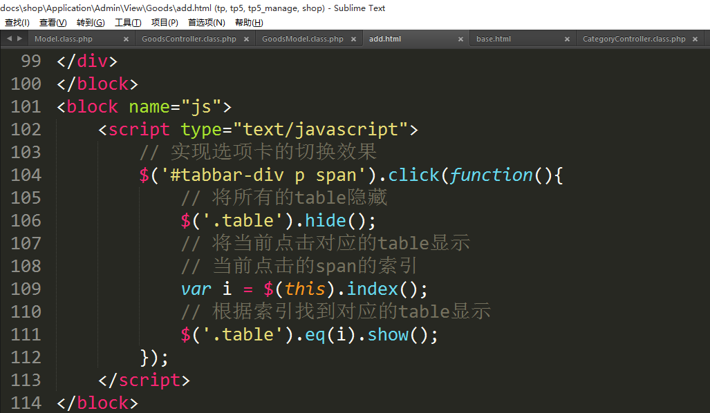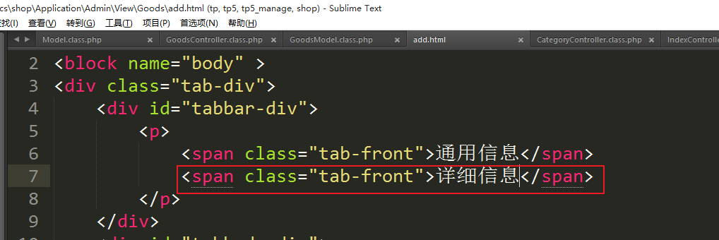 ②修改商品详情使用选项卡