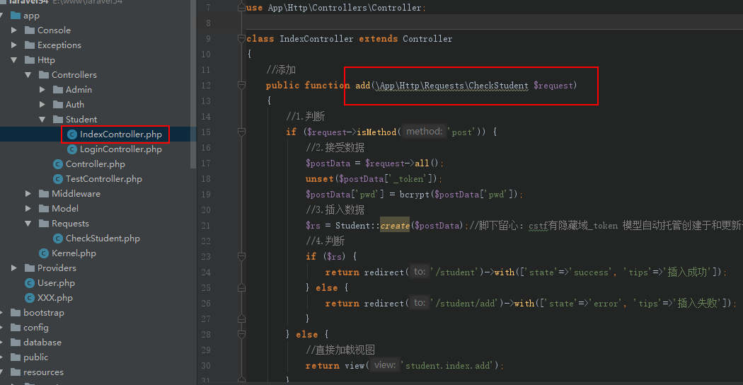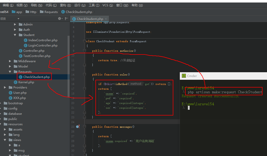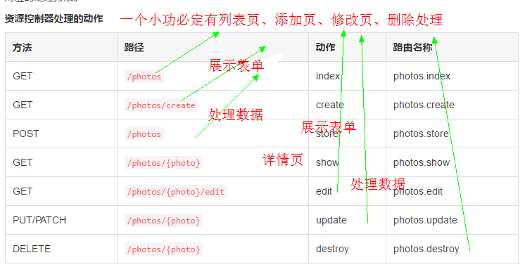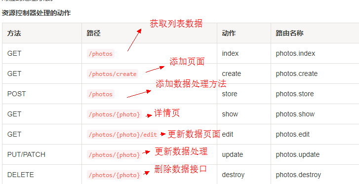 资源控制器指会自定帮我们按照restful规则创建好方法