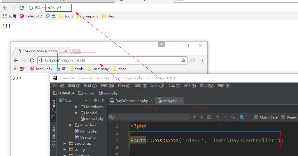- 创建资源控制器:php artisan make:controller Home\Day3Controler –resource