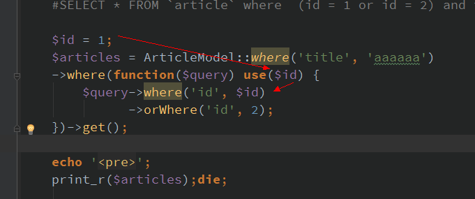 ->leftJoin(‘article’, ‘article.uid’, ‘=’, ‘student.id’)