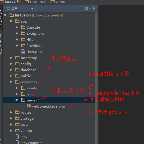 - blade模板是laravel自带模板引擎(推荐使用也可以使用原声php)