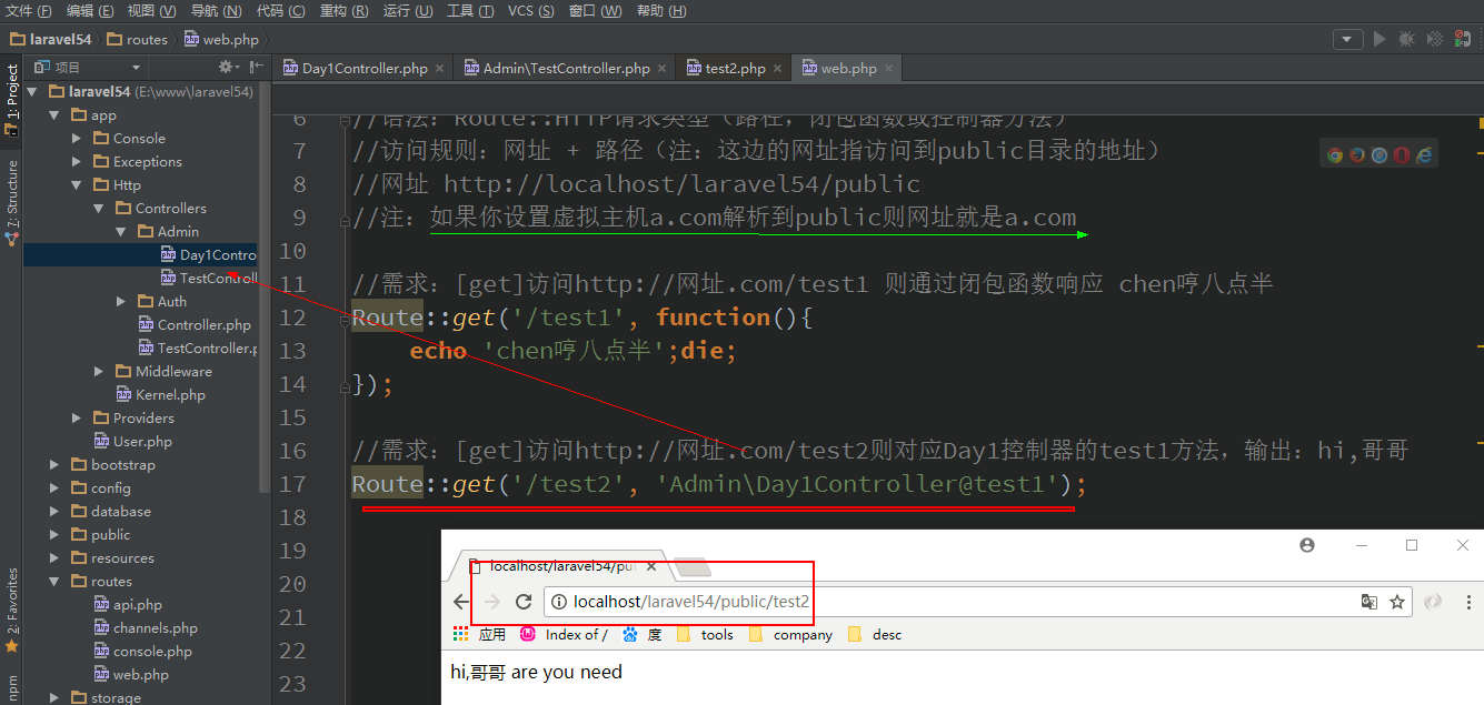 - 步骤1:定义路由访问列表页(Admin\MsgController@index)