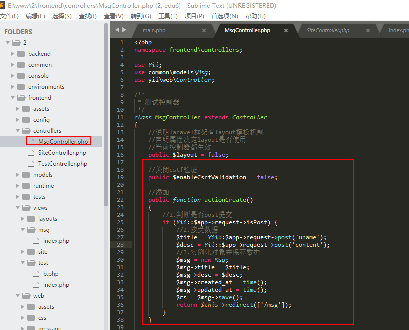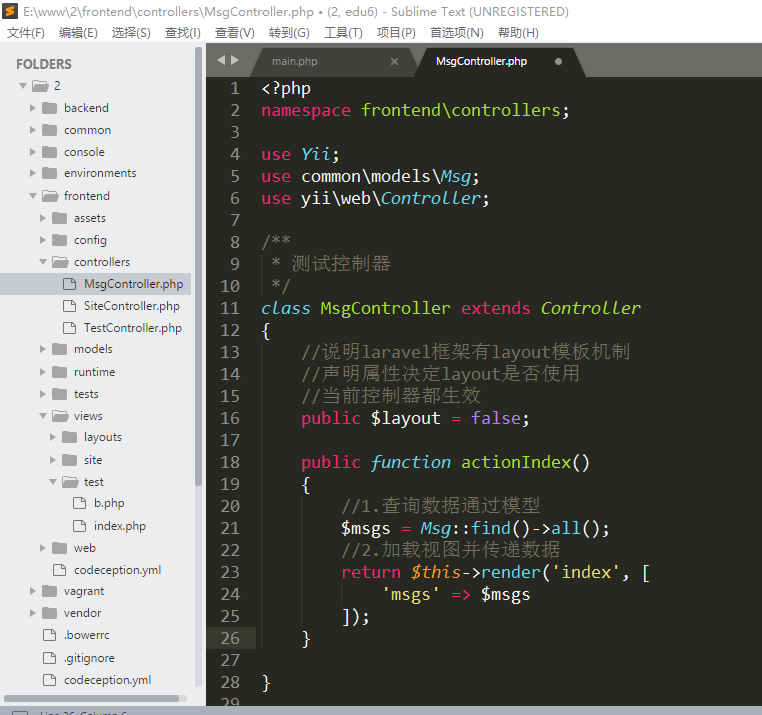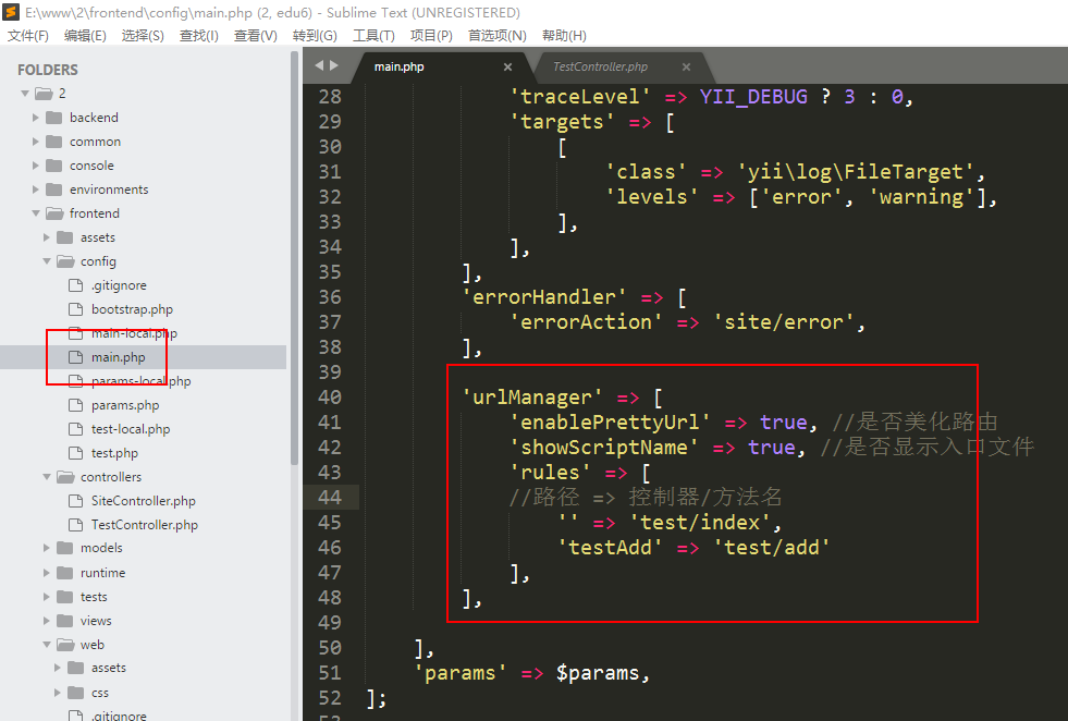 http://l.com/yii2/frontend/web/index.php?r=test/index