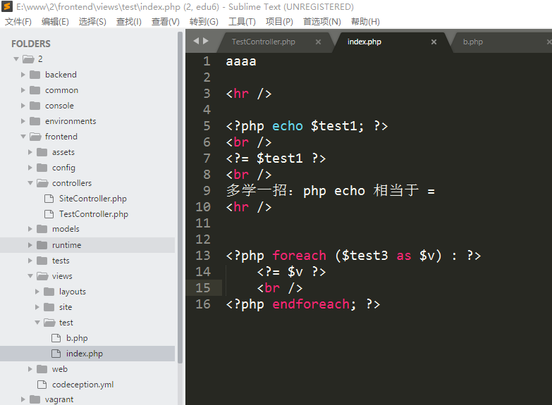 模板显示数据通过<?= $变量名 ?> (注:<?= 相当于 <?php echo )