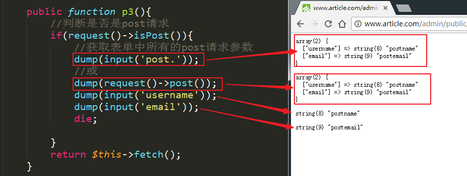 b、在当前方法p3中判断是否是post请求,获取整个post参数和单个post参数