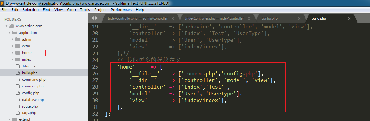 - │ │ ├─config.php 模块配置文件