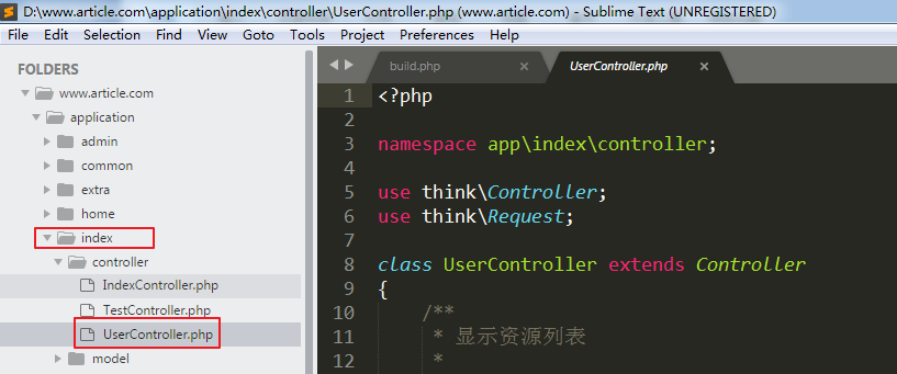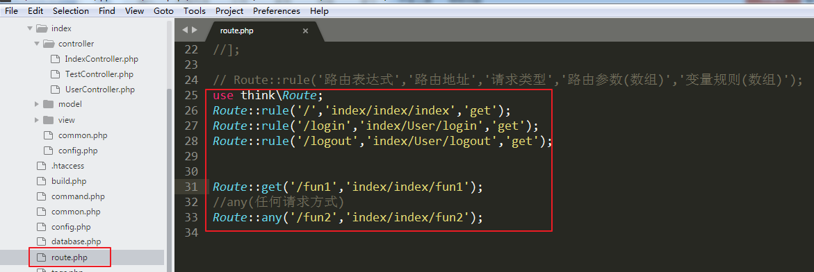 - │ └─route.php 路由配置文件