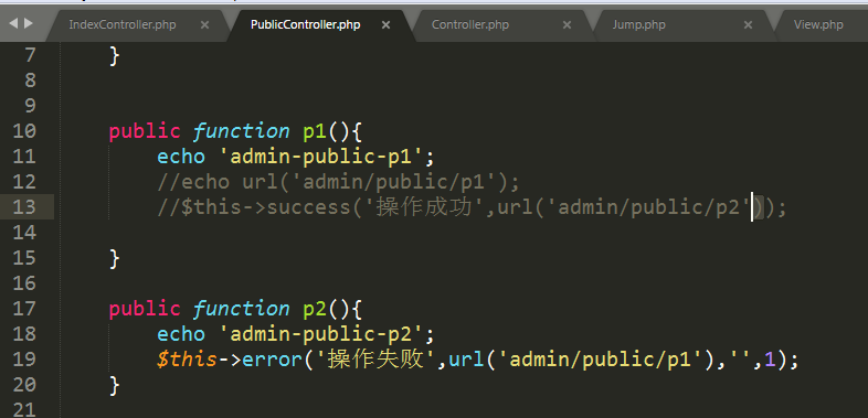 - $url:跳转的地址, 形式为 “模块/控制器/方法” 。
