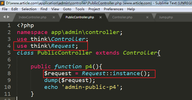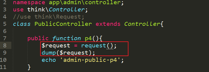 相当于把Request类的对象$request作为p4的参数。