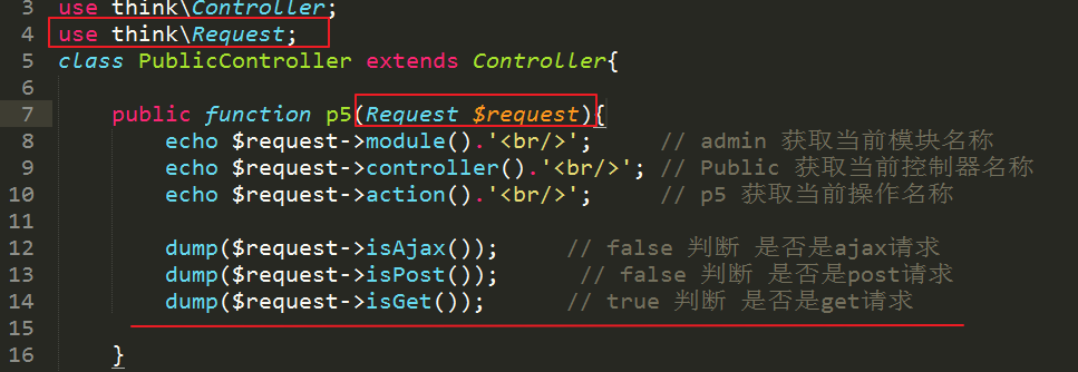 通过tp5框架提供的助手函数request()