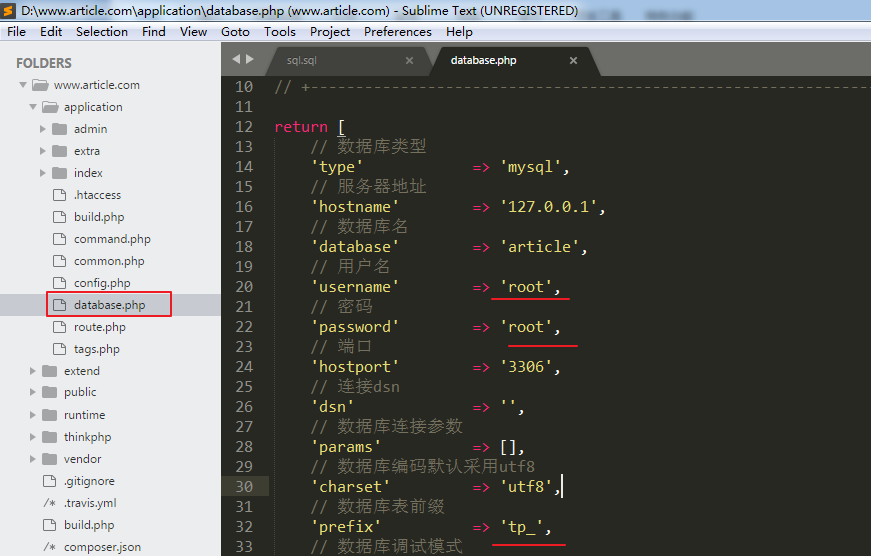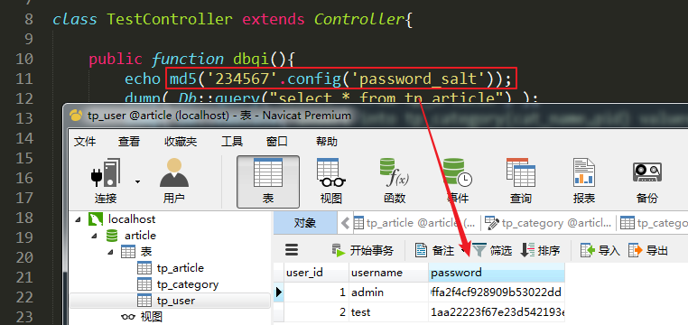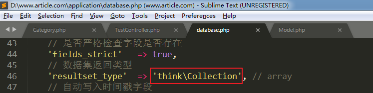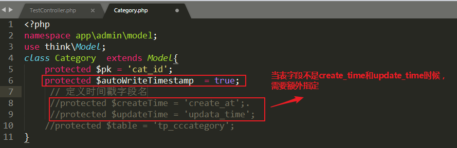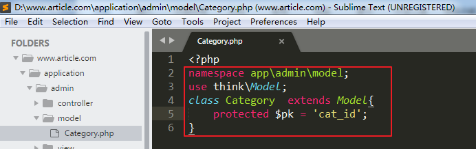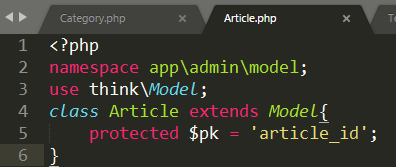 如有一个文章分类表,名为tp_category,此表对应的模型类名和模型文件定义如下: