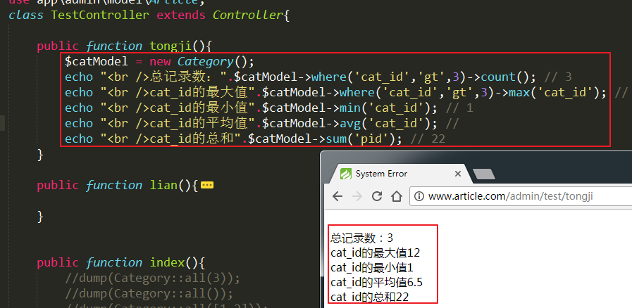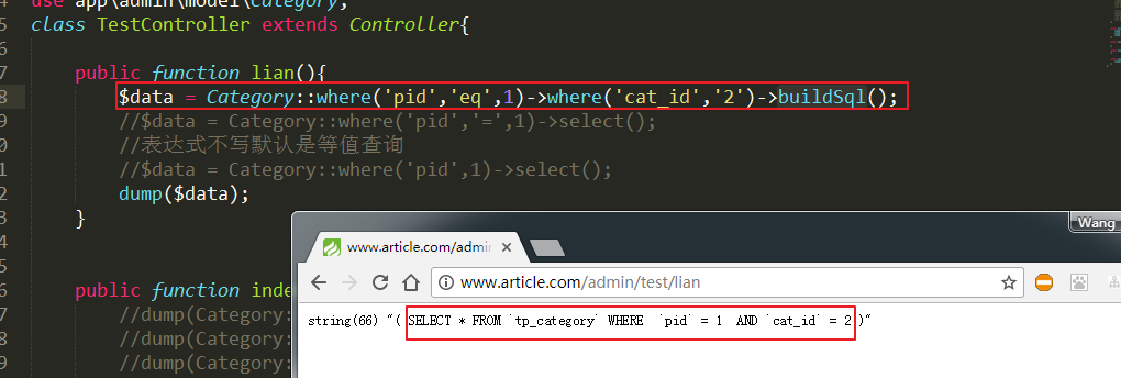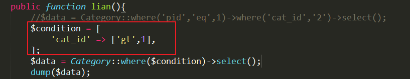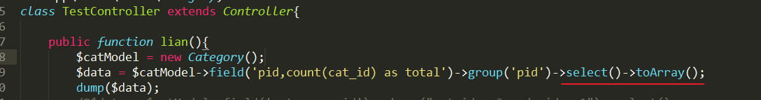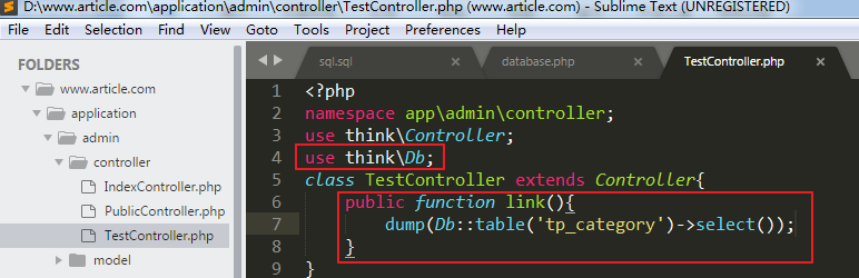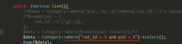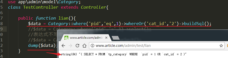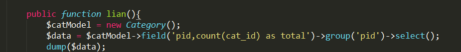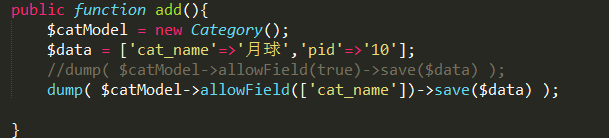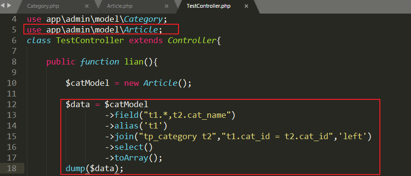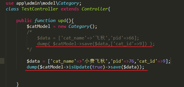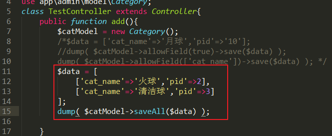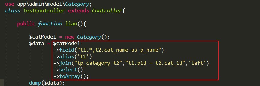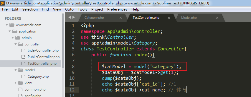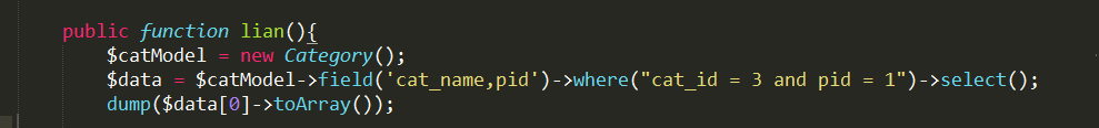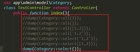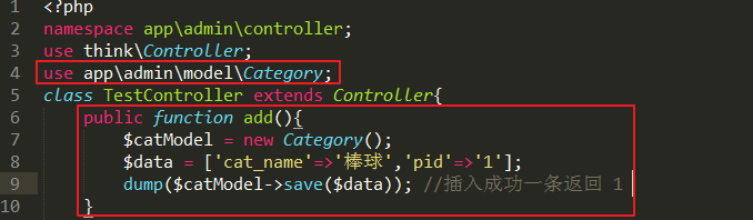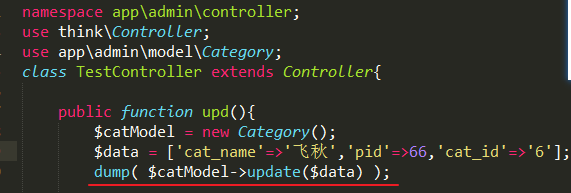 方式一:在控制器中实例化模型首先引入其模型类所在的命名空间,如引入上面的Category