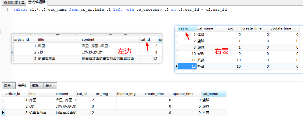 2、创建数据表tp_user(用户表)、tp_category(分类表)、tp_article(文章表)