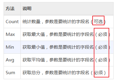 注意:调用统计函数前均支持连贯方法操作,但必须保证最末端是统计函数。