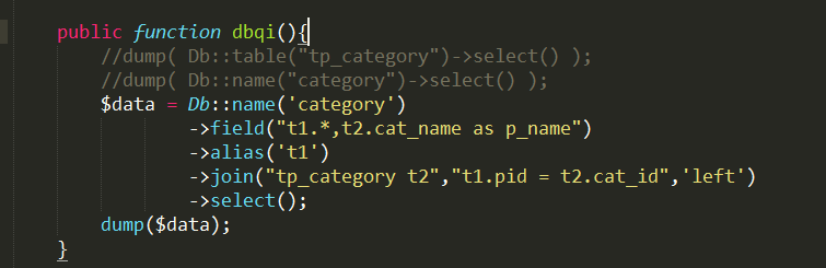 注: Db::table()需要完整表名,带表前缀,DB::name()是不带表前缀,且他们都支持连贯操作方法,只需保证最末端是select或是find或统计函数。
