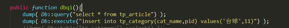如:Db::table(‘think_user’)->where(‘status’,1)->select(); // #带数据表前缀