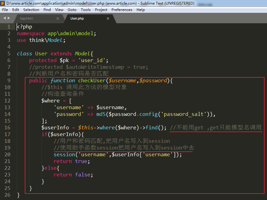 - 在User模型中定义一个检出用户名和密码是否匹配的方法