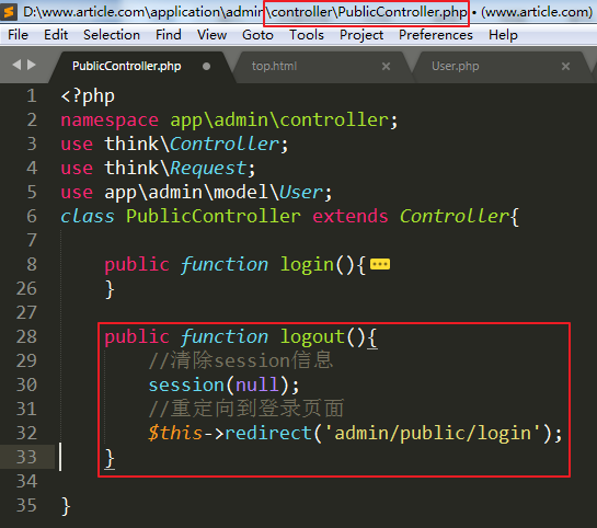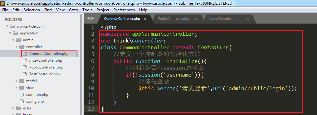 注:Public控制器不可以继承,因为此时还没有session信息。