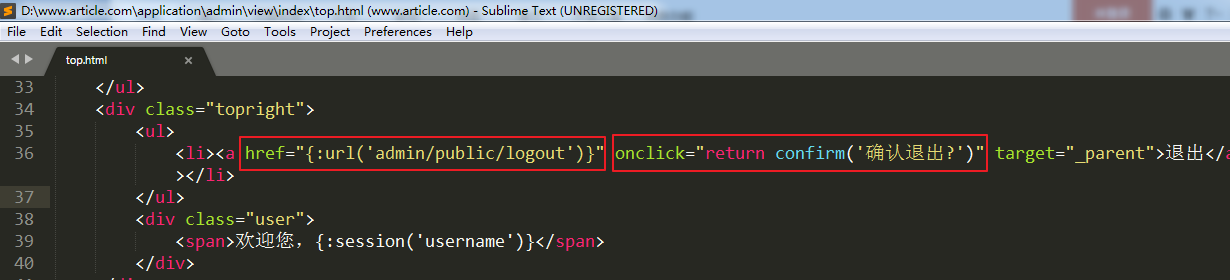登录成功后,把session中的用户名信息回显到后台首页中(top.html)