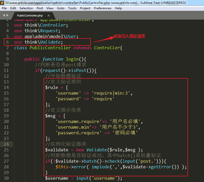 概述:ThinkPHP5.0验证使用独立的\think\Validate类或者验证器进行验证。