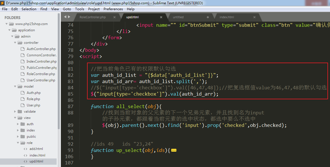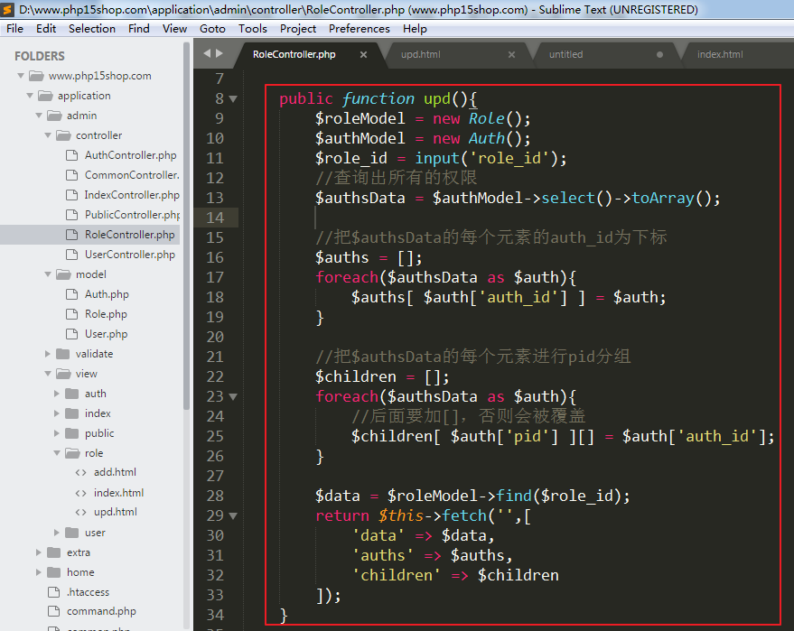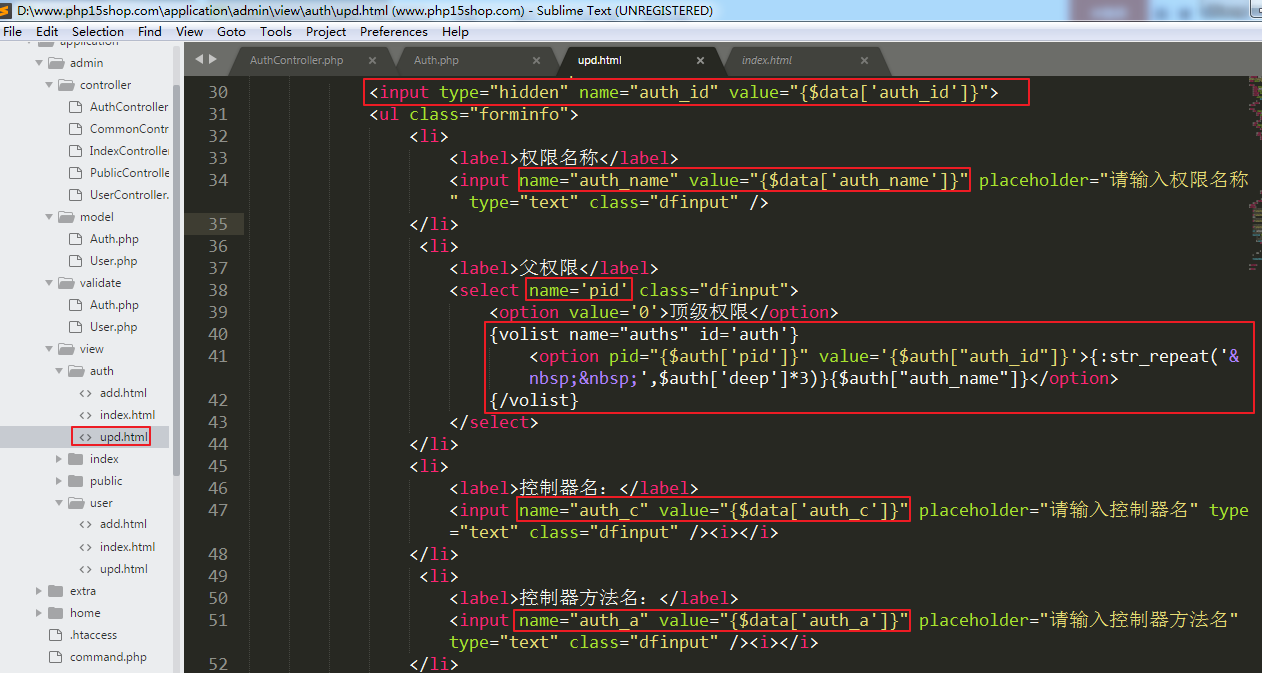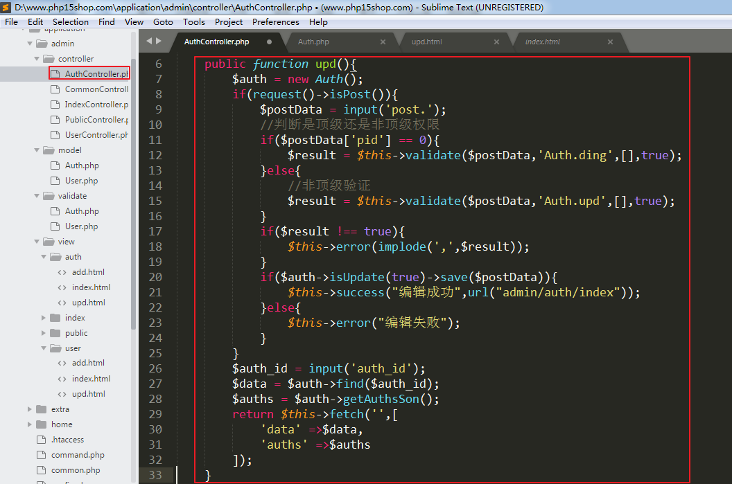 步骤2:在Auth控制器建立一个upd的完成编辑功能